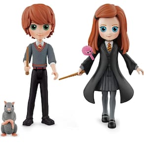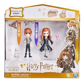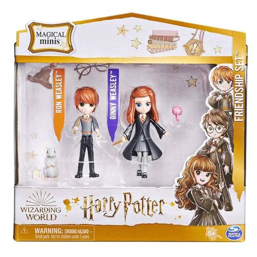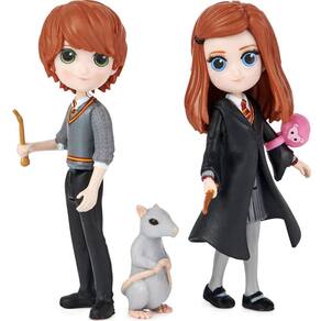 Este conjunto de figuras de Harry Potter da Amizade é obrigatório para os fãs do Mundo Mágico Cada conjunto tem 2 miniaturas mágicas e uma criatura para recriar suas cenas favoritas de Harry Potter Os exclusivos bonecos de 3 polegadas de Ron e Ginny usam seus uniformes de Hogwarts Este conjunto de bonecos inclui 2 figuras dos animais de estimação dos Weasley para adicionar à sua narrativa Scabbers segura seu rabo em uma pose brincalhona e Arnold se agarra ao braço de Ginny Imagens meramente ilustrativas