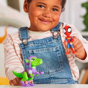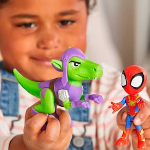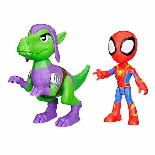Este conjunto de bonecos de ação inclui um boneco articulado do Spidey com aproximadamente 10 cm com seu traje Dino-Web, e também, uma figura articulada do dino Goblin Raptor para incentivar grandes aventuras.