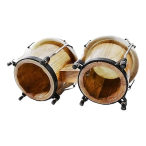 Composto por dois tambores fabricados em madeira com acabamento natural encerado.
