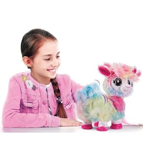 A Shakin Lhama é muito cheia de energia e muito divertida. Ela ama dançar e contagia todo o ambiente com sua alegria! A ShakinLhama está vestida das cores do arco-íris. É muita fofura! Ela também toca e dança três músicas com passos incríveis, até giros de 360.
