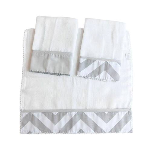 Boquinha Fralda 3 Peças Barrado - Chevron Cinza A Fraldinha de boca Cremer da Coleção Chevron Cinza tem uma embalagem com 3 fraldinhas bordadas de boca com acabamento em crochezinho, super delicado. Fralda Cremer podendo ser lavada na máquina sem perder sua maciez. Lindo também para presentear.