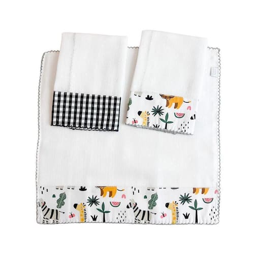 Boquinha Fralda 3 Peças Barrado - Selva A Fraldinha de boca Cremer da Coleção Selva tem uma embalagem com 3 fraldinhas bordadas de boca com acabamento em crochezinho, super delicado. Fralda Cremer podendo ser lavada na máquina sem perder sua maciez. Lindo também para presentear.