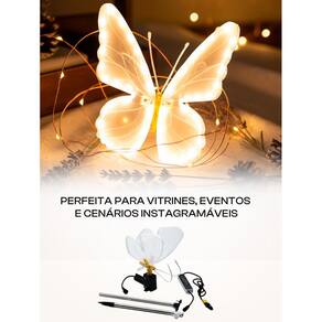 Movimento Suave e Realista: Asas com mecanismo lento e silencioso que simulam o voo, criando um efeito mágico e dinâmico na decoração. Decoração Impactante 40cm : Tamanho grande de 40cm de largura, ideal para ser o ponto focal em vitrines, fachadas, jardins e cenários de eventos. Luz Branca Quente Aconchegante: LEDs de alta luminosidade com tonalidade amarelada, perfeita para criar um ambiente acolhedor e elegante. Perfeita para Ocasiões Especiais: Indispensável para decoração Natalina, festas temáticas jardim, fadas , casamentos e eventos que exigem um toque Instagramável Fácil Instalação: Inclui haste de 65cm e base de apoio, permitindo fixação no chão, em vasos ou superfícies planas. Bivolt Automático: Funciona de forma segura em tomadas 110V e 220V, proporcionando total praticidade no uso. Material de Qualidade: Asas transparentes feitas de polipropileno resistente, garantindo durabilidade e um efeito de luz superior.