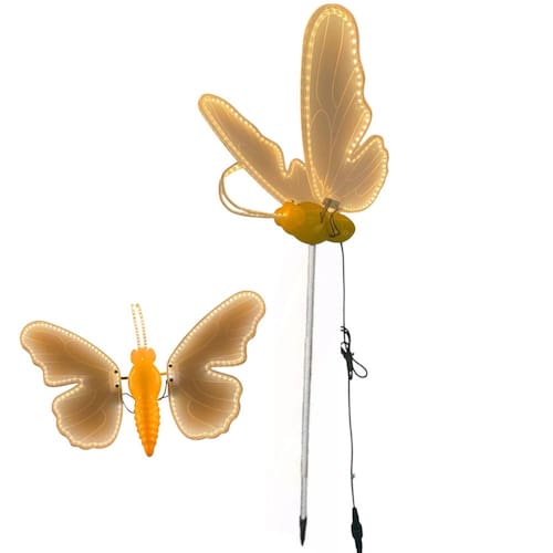 A borboleta pode ser utilizada em diferentes estilos de decoração, seja fixada em jardins ou vasos através da haste que a acompanha.