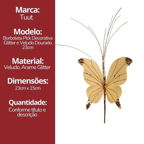 Encante sua decoração de Natal com a delicadeza e o brilho da Borboleta Pick Decorativa com Glitter Dourado. Com design elegante e acabamento sofisticado, ela é perfeita para compor árvores de Natal, guirlandas, arranjos ou centros de mesa, trazendo um toque de leveza e charme festivo ao ambiente.