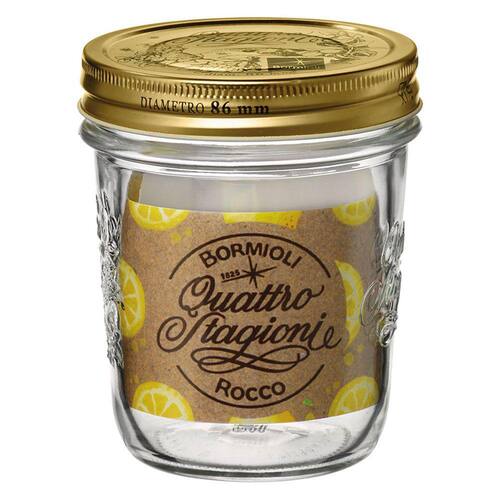 O pote da coleção "Quattro Stagioni" pertence à marca Bormioli Rocco, uma renomada fabricante italiana de vidro.