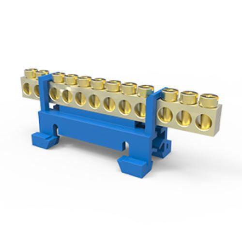 1. Barramento/borneira com suporte para 12 furos para trilho din - enerbras azul - sbtn-e12n