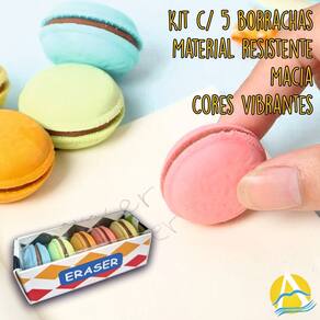 Dê um toque doce e colorido à sua escrita com nosso adorável Kit de Borrachas Macaron! Apresentamos uma coleção encantadora de 5 borrachas irresistíveis, cada uma modelada como deliciosos macarons nas cores mais vibrantes para adicionar um brilho especial aos seus estudos, trabalho ou arte.