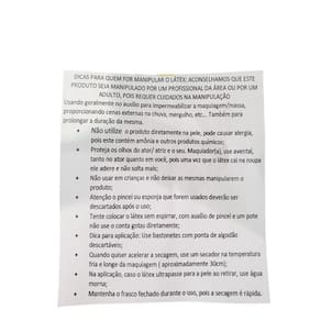 Aconselha-se que este produto seja utilizado por profissional, pois requer muitos cuidados . O produto possui cheiro um pouco forte em seu estado líquido. Quando seca também permanece um cheiro de borracha.