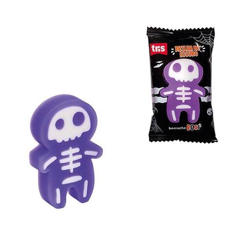 A Borracha Escolar Boo Que Brilha No Escuro - Lilás é o acessório perfeito para os amantes do Halloween. Com seu formato divertido de esqueleto e tecnologia que brilha no escuro, essa borracha é ideal para dar um toque especial aos seus materiais escolares.