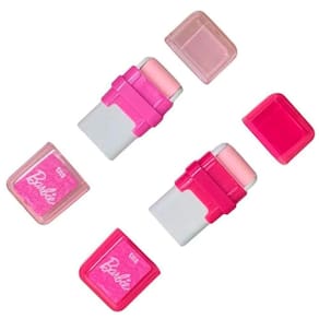 O formato rolinho da Borracha Escolar Tris Barbie Rolinho é projetado para limpar resíduos de maneira eficaz.