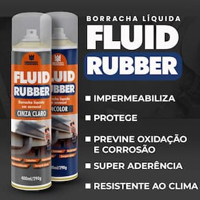 BORRACHA LÍQUIDA Fluid RubberCor: cinza EscuroFluid Rubber é um impermeabilizante elastomérico de borracha de etileno butadieno, base solvente, monocomponente. Sua aplicação forma uma película de borracha vulcanizada a frio resultando em uma camada impermeável e altamente resistente. Caso a membrana seja rompida, pode ser refeita no mesmo local com a reaplicação do produto, onde haverá uma fusão com a capa antiga.Aplicação: excelente adesão em superfícies de concreto e metal como lajes, calhas de concreto, caixas d'água, telhas metálicas e de fibrocimento, dentre outras.PROPRIEDADES:- Atende a NBR 15575 - Alto teor de sólidos formando uma camada espessa e resistente. - Alta flexibilidade. - Resistência aos raios UV-A e UV-B. - Proporciona melhor conforto térmico e acústico. - Pode ficar exposta ao sol e intempéries. - Pode ficar exposta ao tráfego moderado.Composição: mistura de copolímeros, cargas minerais, aditivos melhoradores de performance e gás propelente.MODO DE USO: Certifique-se que a superfície esteja limpa, seca e isenta de óleos, poeiras, gordura, partículas soltas e outros contaminantes. agite bem a lata antes de usar. Posicione a uma distância de 15 a 20cm do local desejado e pressione o atuador. Aplique 2 demãos ou mais, dependendo da área de cobertura. Para evitar entupimentos, após a aplicação, vire a lata de cabeça para baixo e pressione o atuador, para a limpeza do sistema de válvula.PRECAUÇÕES: Mantenha afastado do calor, faísca, chama aberta e superfícies quentes. Não perfure ou queime, mesmo após o uso.