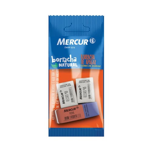 A Borracha Mercur Record apaga com facilidade, sem manchar o papel. Produzida a partir do látex das seringueiras, uma matéria-prima renovável que se regenera na natureza, a borracha escolar tem em sua composição o fáctis, que proporciona maior maciez. Além disso, permite que fragmentos da borracha se soltem na hora de apagar e que não borre o grafite.