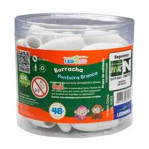Borracha Ponteira Branca Leo&Leo - 288 Unidades Característica do Produto: Material: borracha termoplástica atóxica, isenta de PVC e carga inerte Marca Leo&Leo 288 peças Descrição do Produto: Borracha ponteira branca. Não suja e não enruga o papel. Atóxico. Lápis não acompanha o produto. Ótima opção para . Dimensões da embalagem:18 x 6,5 x 18 cm Borracha 2,5 x 1,2 cm Marca: Não Informado