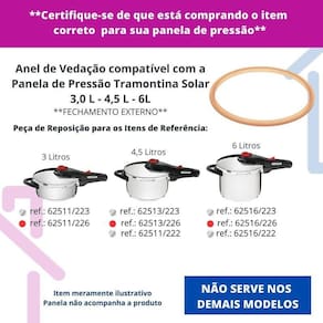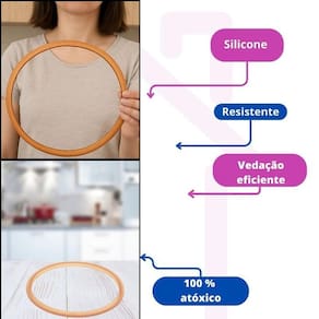Anel de vedação de silicone compatível para panelas tramontina solar - modelos novos detalhes vermelhos 3l, 4,5l e 6l Nosso empenho é procurar o que há de mais atual e funcional no mundo culinário e para organização da sua casa, priorizando sempre a qualidade e a versatilidade dos produtos. Tenha sempre em mãos a borracha de silicone para panelas adequada ao modelo da sua panela, garantindo a vedação perfeita e a segurança no preparo das suas receitas. Produzido em silicone 100% atóxico, não resseca, mantém a durabilidade e melhora o desempenho da panela. Compatibilidade linha solar - 3 litros - ref.: 62511 / 223 / 226 - 4,5 litros - ref.: 62513 / 222 / 223 / 226 - 6 litros - ref.: 62516 / 222 / 223 / 226 Atenção: não serve para modelos antigos detalhes amarelo . Não serve para os demais modelos da mesma marca Características técnicas - material: silicone 100% atóxico - diâmetro externo: 24 cm - diâmetro interno: 22 cm - produto da marca guamantec - alta qualidade Benefícios - vedação completa e segura da panela - aumenta a vida útil da sua panela - mantém o cozimento mais eficiente Conteúdo da embalagem 1 anel de vedação de silicone compatível com a panela tramontina solar Marca: Não Informado