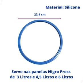 Kit completo para panela nigro press - 3, 4,5 e 6 litros borracha peso válvula de segurança cabo da tampa com parafusos Proporcione mais segurança e eficiência para sua panela nigro press com este kit completo de reposição. Compatível com os modelos de 3, 4,5 e 6 litros, ele garante vedação perfeita, cozimento uniforme e mais tranquilidade na hora de preparar suas receitas. Características do kit: - peso de encaixe sem rosca : seguro, resistente e fácil de instalar. - borracha de silicone: material durável que não resseca, proporcionando vedação eficiente. - cabo da tampa com parafusos: prática e segura com encaixe perfeito. Medidas: - borracha: diâmetro de 22,4 cm - cabo: comprimento de 17,5 cm conteúdo da embalagem: - 1 borracha de vedação silicone - 1 peso - 1 válvula de segurança - 1 cabo da tampa com 2 parafusos cuidados importantes: - verifique sempre o estado do seu equipamento antes de usar. - não ultrapasse a capacidade da sua panela. - faça a limpeza correta após o uso. Manutenção em dia = panela segura Gostou Garanta já o seu kit de reposição nigro press e mantenha sua panela funcionando como nova Marca: Não Informado Ean: 7898749651798