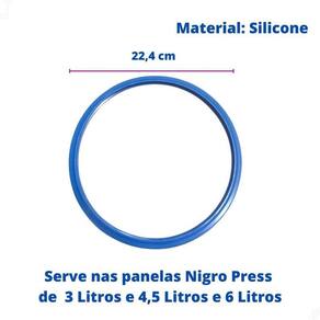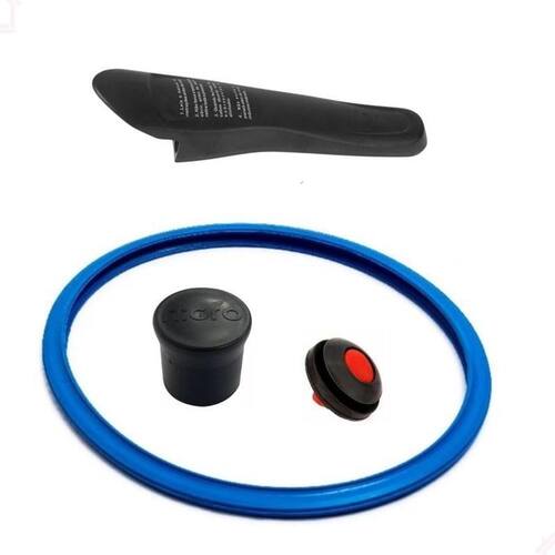 Kit completo de reposição para panela de pressão Nigro Press, compatível com modelos de 3, 4.5 e 6 litros. Inclui borracha de silicone, peso de encaixe sem rosca, válvula de segurança e cabo da tampa com parafusos.Proteção para
