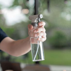É possível armazenar diversos tipos de produtos de limpeza, como álcool, limpa vidros e essências para casa.