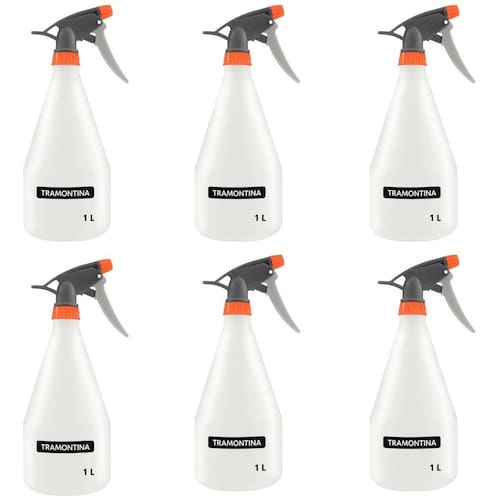 Borrifador Pulverizador Jardinagem Manual 1 Litro Tramontina - Kit com 06 Unidades O pulverizador borrifador da Tramontina de 1 litro é uma ferramenta essencial para facilitar suas tarefas de jardinagem, limpeza e aplicação de produtos químicos de forma prática e eficiente. Com capacidade para armazenar até 1 litro de líquido, esse pulverizador é projetado para atender às necessidades domésticas e pequenos trabalhos profissionais. Construído com materiais de alta qualidade, o pulverizador apresenta um recipiente translúcido que permite visualizar facilmente o nível do líquido, evitando desperdícios e recargas frequentes. Seu design ergonômico e leve torna o manuseio confortável, garantindo precisão e facilidade durante o uso. O bico pulverizador ajustável oferece diferentes opções de jato, permitindo que você escolha entre uma névoa fina para áreas amplas ou um jato concentrado para locais de difícil alcance. Isso proporciona versatilidade no uso, adequando-se a diversas aplicações, como regar plantas, umidificar folhagens, aplicar fertilizantes, ou produtos de limpeza. CARACTERÍSTICAS - Corpo em plástico de alta resistência. - Bico com jato regulável - Corpo em plástico de alta resistência com indicador de capacidade. - Versátil e resistente. - Leve e com gatilho ergonômico. - Capacidade de 1 L. ESPECIFICAÇÕES TÉCNICAS Material: Plástico Capacidade: 1 Litro do Fabricante: 90 dias ITENS INCLUSOS 06 Pulverizadores 1 Litro