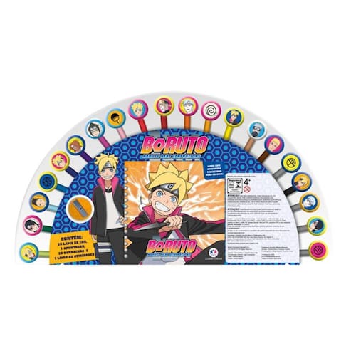 Prepare-se para momentos de muita diversão com este superkit do Boruto. Além de um livro repleto de atividades e desenhos para colorir, você vai encontrar apontador,lápis de cor e borrachas coloridas para tornar esse passatempo ainda mais incrível!