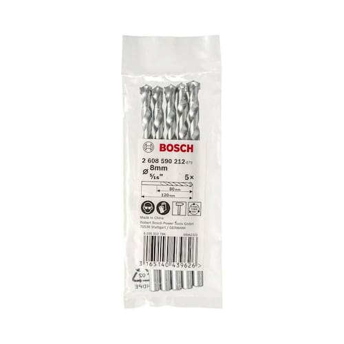 Bosch Broca CYL-1 para concreto 8 x 80 x 120 mm 5 peças Compatível com furadeira de impacto. A broca CYL-1 está otimizada para perfurar alvenaria. A forma de U com 2 espirais oferece boa remoção do pó, enquanto a ponta de metal duro torna a broca mais resistente ao desgaste. Este produto destina-se a utilização em alvenaria.