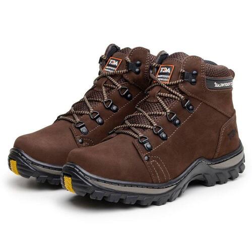 Bota Adventure Tratorada Masculina Couro Palmilha Anatomica Solado Borracha Forro Algodão Trilha - 46 - Marrom