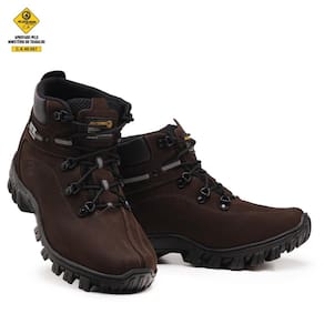 Nossa bota aventura couro Masculino foi feita para você, que procura conforto e segurança em um calçado, para praticar seu esporte favorito, seja ele uma trilha ou alguma caminhada em meio a natureza. Confeccionado em couro, nosso coturno proporciona o máximo de conforto e qualidade, juntamente ao seu solado feito em borracha, que trás mais segurança ao caminhar por terrenos escorregadios, ou com obstáculos. Trata-se da junção entre estilo, performance, e conforto.