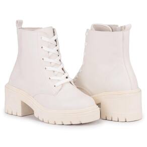 Bota Bico Redondo Coturno Feminino Cano Curto Salto Confort - 37 - Branco