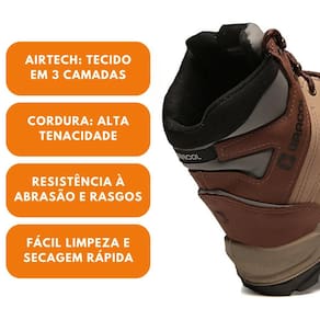 Tecnologias: Airtech, couro hidrofugado e cordura