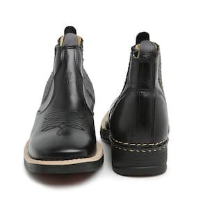 Bota Botina em Couro Masculino Country Elástico Calce Fácil Detalhe Costura Confortável - 45 - Preto