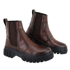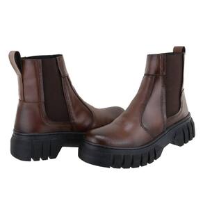 Bota Botina Feminina Calce Facil Ajuste Elastico Puxador Traseiro Solado Tratorado Borracha - 36 - Marrom