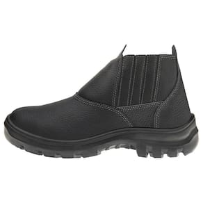 Bota Botina Segurança Marluvas Vulcaflex Bico Pvc Núm: 44 Bota de segurança confeccionada em couro. Fechamento em elástico nas laterais. Biqueira de polipropileno ou aço. Palmilha de montagem em EVA. Opcionais em palmilha de aço. Solado em PU Bidensidade bicolor com sistema de absorção de impacto, injetado diretamente ao cabedal.