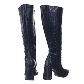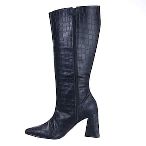 Bota Cano Alto Feminina Croco Salto Grosso e Bico Fino Fecho Zíper - 34 - Preto