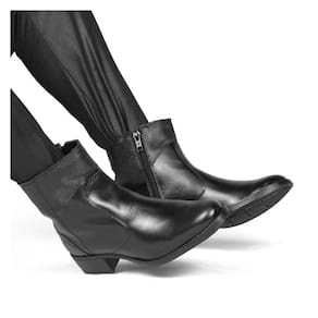 Bota Cano Curto Básica M&D Store Fecho em Zíper Bico Redondo - 37 - Preto