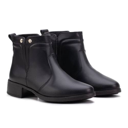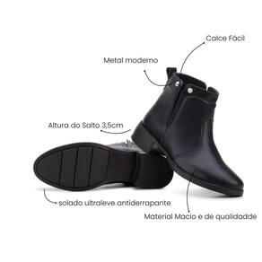 Bota Cano Curto Feminina Calce Fácil Montaria Couro - 35 - Preto