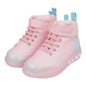 Tênis de led feminino rosa degradê com glitter perfeito para festas! Tênis infantil com luzes de led que trás interação nas brincadeiras e passeios e deixa o visual mais moderno.