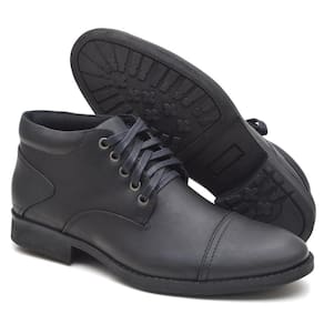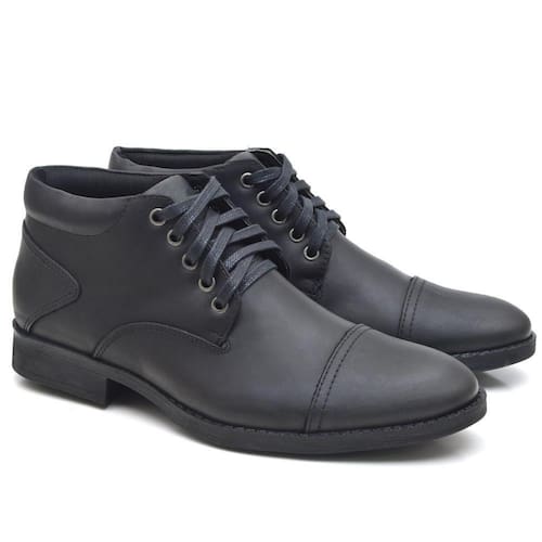 Bota Casual Masculina Couro Cadarço Estilo Conforto Macio - 39 - Preto