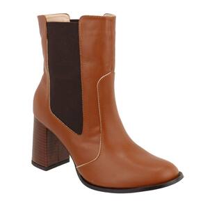 Bota Chelsea Feminina Cano Baixo Salto Grosso Elástico Lateral Bota Casual Dia a Dia - 39 - Marrom