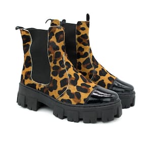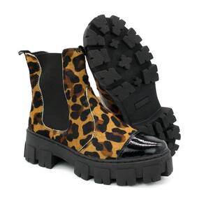 Bota Chelsea Feminina Couro Animal Print Tratorada Estilo - 36 - Multicolor