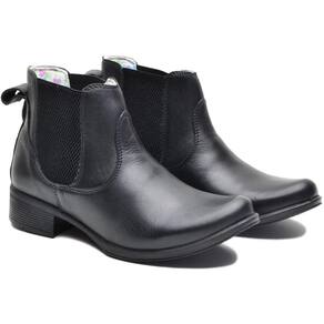 Bota Chelsea Feminina Couro Botina Cano Curto Elástico - 38 - Preto