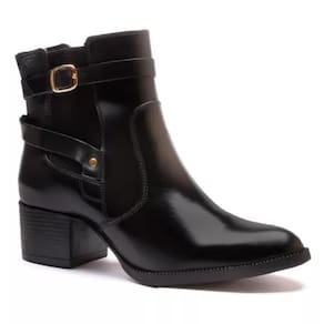 Bota Chelsea Feminina Couro Cano Curto Salto Baixo Conforto - 37 - Preto