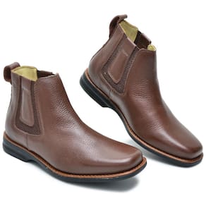 Bota Chelsea Masculina Couro Cano Curto Elástico Moderna - 39 - Marrom