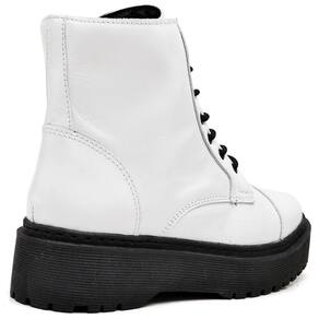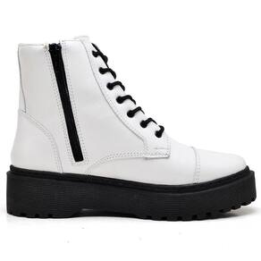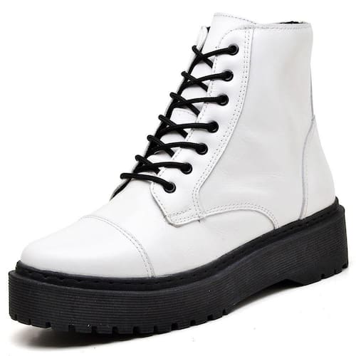 Bota Coturno Blogueira Plataforma de Couro Feminina Estilosa Solado Borracha Resistente - 37 - Branco
