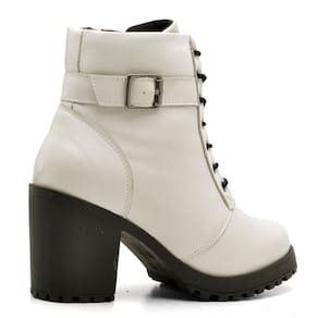 Bota Coturno Cano Curto Haldrys de Couro Lisa com Salto Medio Grosso - 35 - Branco