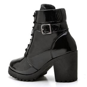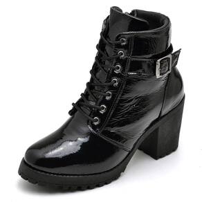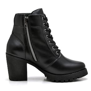 Bota Coturno Couro Feminina Ziper Salto Medio Cano Curto Palmilha Conforto Macia - 33 - Preto