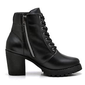 Bota Coturno Feminina Couro Cano Médio Tratorada Moderna - 40 - Preto