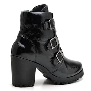 A bota coturno da Q&A oferece elegância e versatilidade, muito utilizado no Outono/Inverno ela também vem garantindo looks de verão. Confeccionado em couro com acabamento em verniz traz um conceito autentico e moderno. Seu solado tratorado em borracha garante segurança ao caminhar e leveza. Sua palmilha super macia e salto meia pata proporcionam conforto no dia a dia. Conta também com fechamento em zíper e fivelas reguláveis que proporcionando ajuste perfeito aos pés. O modelo é ideal para uma produção estilosa, aposte numa combinação com saia e vestido.