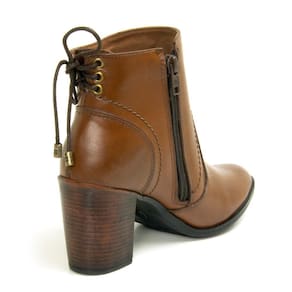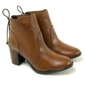 Bota Coturno Feminina Couro Lisa Zíper Salto Médio Casual - 40 - MARROM