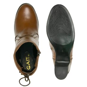 Bota Coturno Feminina Couro Lisa Zíper Salto Médio Casual - 36 - MARROM