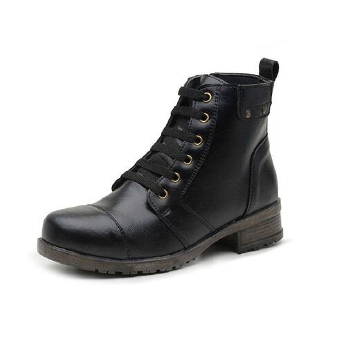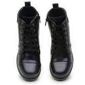 Bota Coturno Feminino Casual Cano Curto Salto Baixo Sola Borracha Com Ziper e Cadarço - 35 - Preto